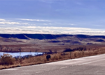 This is one of my views, not a great photo, but there are 2 deer there by the road. And the water is a reservoir for an area near the city of Denver.